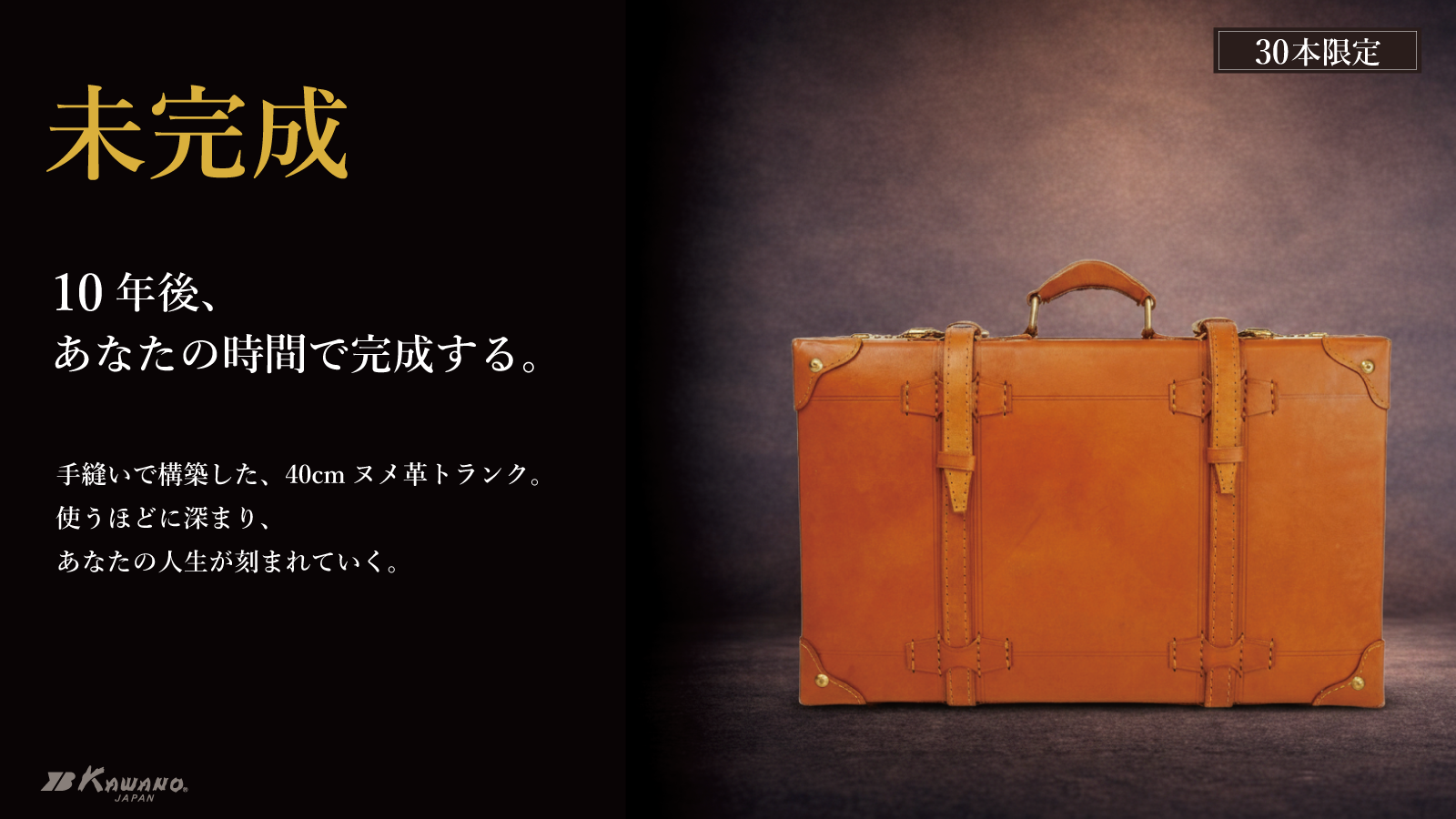makuake↓ 19世紀の重厚な旅鞄の系譜を今に受け継ぐ、木枠仕立てのヌメ革トランクケース。ーーーーーー