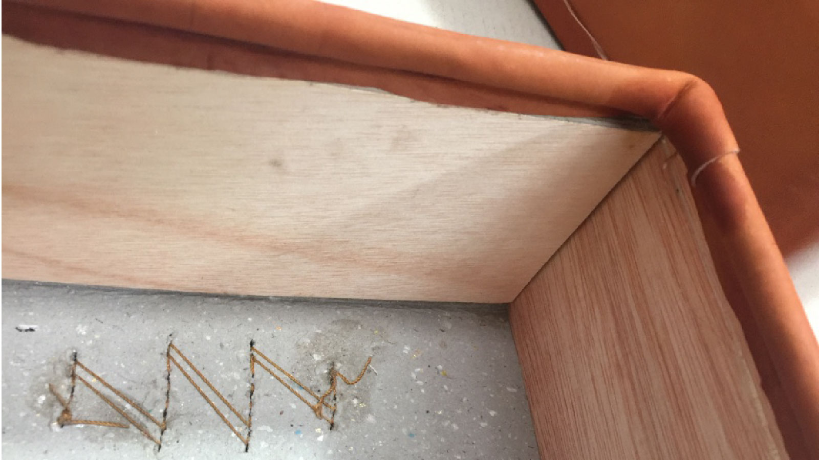 木枠があることで、革を張ったときに歪まず、美しい箱型の形状を保つことができます。
