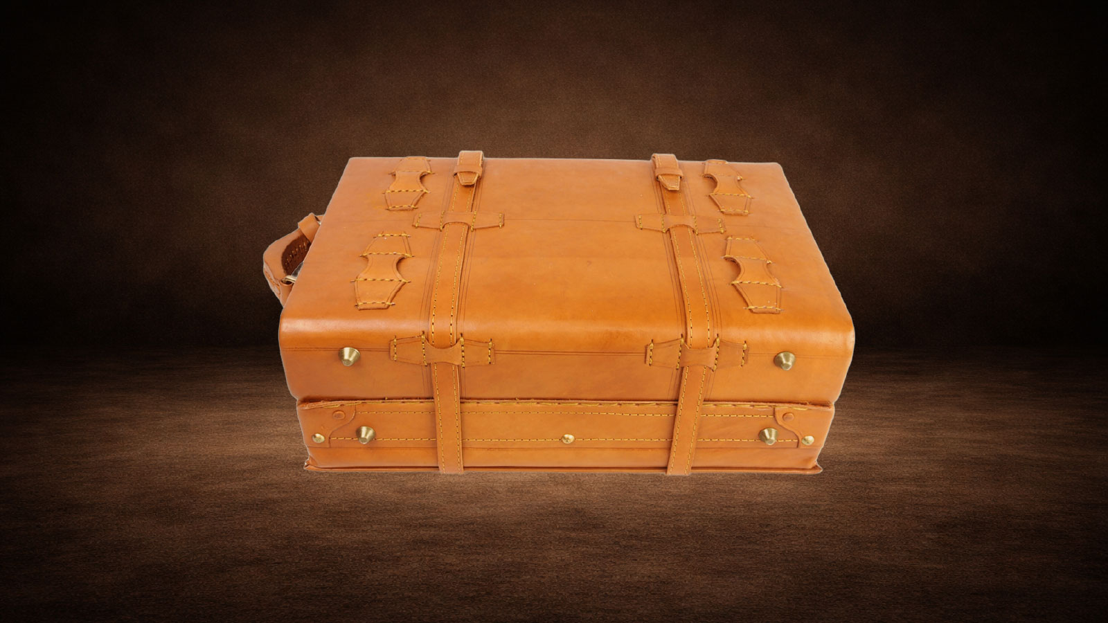 19世紀の重厚な旅鞄の系譜を今に受け継ぐ、木枠仕立てのヌメ革トランクケース。